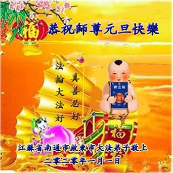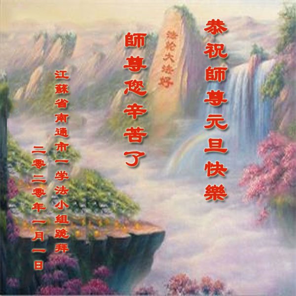 江苏省南通市大法小弟叩拜,恭祝慈悲伟大的师尊元旦快乐! 江苏省南通市一学法小组成员恭祝慈悲伟大的师尊新年快乐!