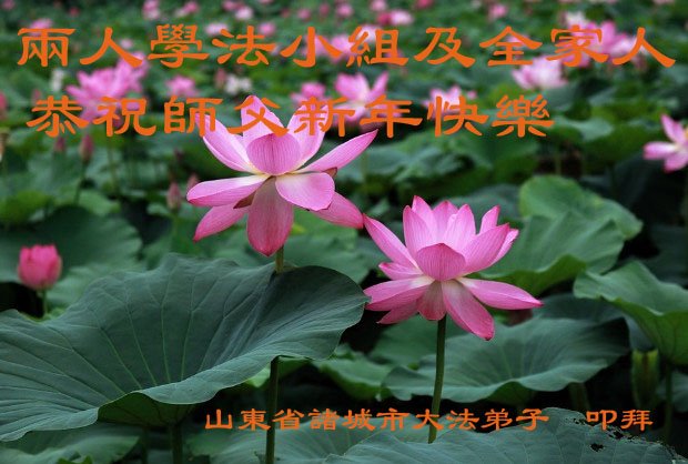山东省潍坊市诸城市两人学法小组大法弟子及全家人恭祝慈悲伟大的师父新年快乐!