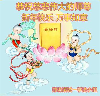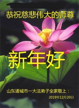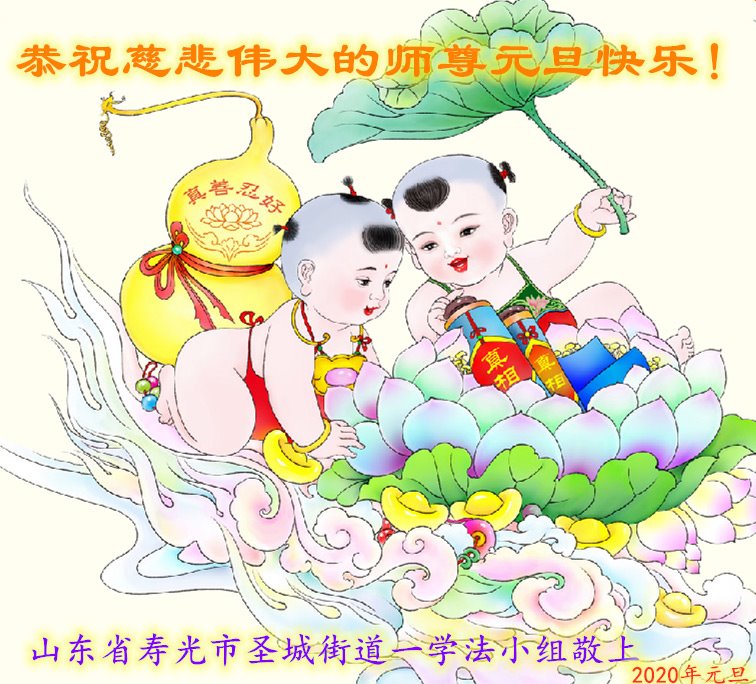 【明慧网二零一九年十二月二十九日】 山东省潍坊市寿光市圣城街道一学法小组大法弟子恭祝师尊新年快乐!
