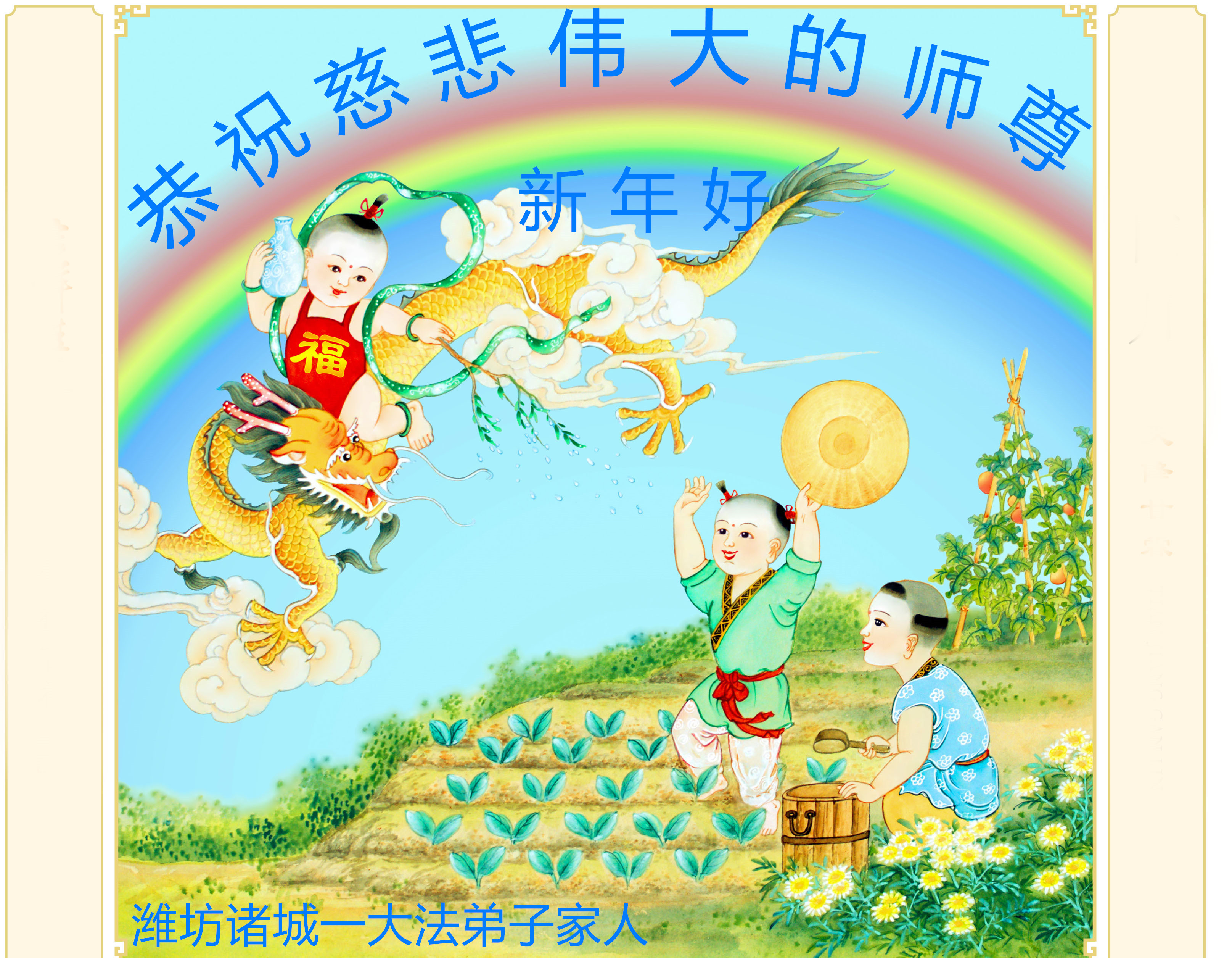 山东省潍坊市一学法小组大法弟子恭祝师尊新年快乐!