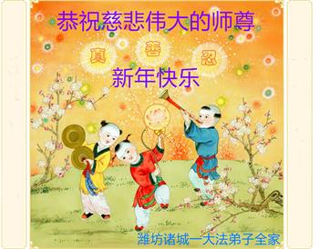 山东省潍坊市诸城一大法弟子全家恭祝慈悲伟大的师尊新年快乐!