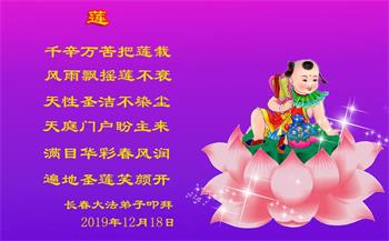 【明慧网二零一九年十二月二十九日】 吉林省长春一老大法弟子恭祝师尊新年快乐!