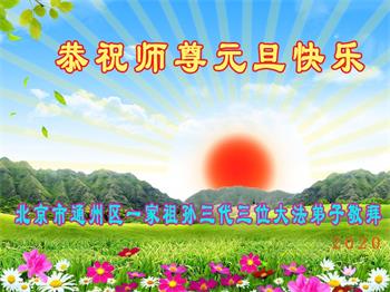 北京通州市一家三代三位大法弟子恭祝师尊元旦快乐!