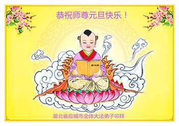 尊敬的师父好:在今后的修炼中,走好我们要走的每一步,让师父少操心。谢谢师父!我们会做好应该做的“三件事”! 湖北省孝感市应城市全体大法弟子恭祝师尊元旦快乐!