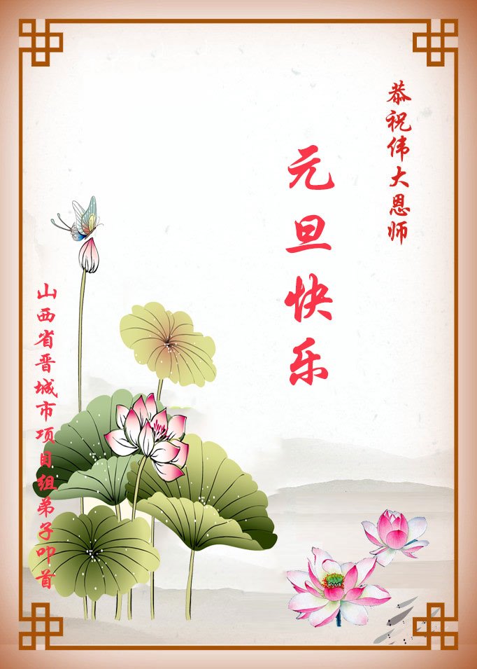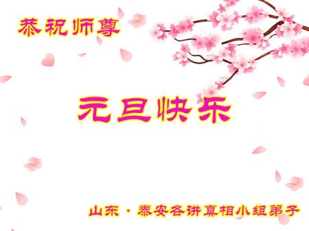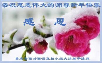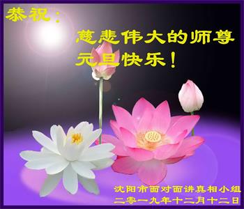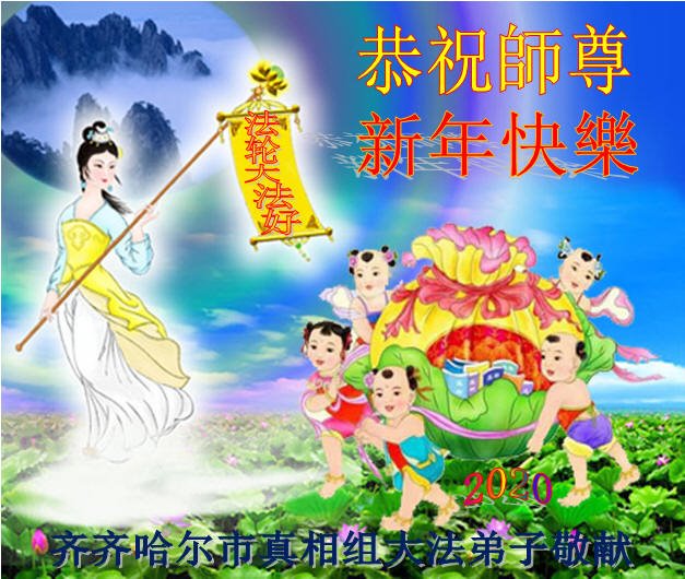 | 【明慧网二零一九年十二月二十九日】2020年新年将至,中国法轮功学员们感恩师父的慈悲苦度,祝愿师尊新年好! 师尊亲传法轮大法二十七年,历尽艰辛;上亿法轮功学员身心受益,道德回升。而中共迫害大法二十年,谎言肆虐。为了还百姓的知情权,为了制止迫害,各地法轮功学员们不畏辛劳制作真相资料,不畏寒暑走街串巷、翻山越岭传播法轮大法好,使越来越多的民众有了未来,有了希望。 雪绽红梅春来早 亿万金莲英姿俏 爆竹声中灭红朝 作恶多端必自毙 翻山越岭送福音 走村串户发“通告” 谨遵师命多救人 弟子惟愿师尊笑 山西省晋城市一项目组大法弟子恭祝至高无上的师父元旦快乐!山东省烟台市海阳市一乡村资料点大法弟子恭祝慈悲伟大的师尊新年快乐!师父好!我们这朵小花在师父的看护下,快乐的成长,为救度这一方众生,发挥着超常的能力,谢谢师父的慈悲加持,让我们这朵小花开的更艳,我们资料点同修也会更加配合好,按师父指的路,走好走正。 全体资料点同修敬拜师尊 四川成都一真相小组大法弟子恭祝慈悲伟大的师尊新年快乐!谢师尊,慈悲延续了又一年, 末劫众,还有得救的机缘。 众弟子,感恩师尊慈悲苦度, 齐协力,除邪恶传真相救众生, 兑现史前大愿! 成都一真相小组大法弟子敬上 2019年12月25日 辽宁丹东市一家庭资料点大法弟子恭祝师尊新年好!恭祝慈悲伟大的师尊新年好!想起师尊,感恩的泪水就会模糊双眼,感恩的心情用千言万语也无法表达。在我遭遇重大车祸时,师尊保护我進入另外空间,让我化险为夷,平安无恙,让亲朋好友看到了大法神奇。 谢谢您,师尊,谢谢您的慈悲救度,谢谢您给了弟子修炼的机缘。在新的一年里,弟子一定不负师恩,珍惜师尊用巨大承受延续来的时间,听师尊的话,努力修好自己,多救人,兑现自己的誓约,完成自己的使命,惟愿师尊笑!弟子叩谢师尊。 黑龙江大庆一对姐妹大法弟子恭祝师尊元旦快乐!恭祝慈悲伟大的师尊元旦快乐!感恩师尊对弟子及家人的慈悲保护!过去的一年里,弟子深刻的体悟到大法弟子无论遇到什么事,都要站在正法、救度众生的基点上,都是为修炼提高而去掉人心。弟子叩谢师尊!我们姐妹也代表我们学法小组的大法弟子恭祝师尊新年好!师父辛苦了! 救人急 风霜雪雨寒暑往来 街头巷尾真相传递 海外国内众心同齐 众生得救弟子欢喜 助师正法解体邪共 普天同庆荣归故里 云南学法小组、资料点、项目组大法弟子恭祝慈悲伟大的师尊新年快乐!河北藁城一讲真相学法小组大法弟子恭祝慈悲伟大的师尊新年快乐!我们是长年坚持面对面讲真相的学法小组,文化不高,年龄较大,平均年龄六十多岁,我们知道大法好,知道师父是来救人的,我们就听师父的话,多救人,做好三件事,跟师父回家。 谢谢师父的慈悲苦度! 河北藁城一讲真相学法小组大法弟子叩拜 辽宁鞍山一小资料点大法弟子及家人恭祝慈悲伟大的师尊新年快乐!师父您辛苦了!弟子叩谢师尊!我代表我和我的家人感恩慈悲伟大的师尊慈悲苦度!弟子想念您!弟子无法用常人的语言表达对师父的感恩,只有更加精進实修报师恩。 河南周口一名年届耄耋的大法弟子恭祝慈悲伟大的师尊新年快乐!新年将至,万象更新,每逢佳节,倍念师尊,合十跪拜,热泪满襟。 苍宇历劫,是师尊为众生承受了无量巨难;再造新宇,是师尊开创了亘古未有的崭新一切;普度众生,是师尊为弟子铺就了回天之路!千言万语,难以表述师父的慈悲伟大;万语千言,无法表达对师尊的无尽感恩! 值此新年来临之际,谨献上弟子最虔诚的祝愿和期盼:祝慈悲伟大的师尊节日快乐!期盼师尊早日回中原团聚! 值此一元复始之际,弟子以此为新的起点,在新的一年里,紧跟师父正法進程,多学法得法,多向内找,尽快放下一切人心,更加勇猛精進,多发正念,多与同修圆容配合,揭穿谎言,解体迫害,证实大法,救度世人,兑现史前誓约,惟愿师尊笑! 在此,给师父献上一首小诗: 旧穹坏灭众生险 师尊下尘解巨难 天门开启金轮转 弟子助师度有缘 握钳之手拿鼠标 一朵小花家中绽 花香沁飘传福音 唤醒乡亲登法船 红魔狂舞无所惧 历经风雨花更艳 师尊时时护弟子 逢凶化吉神路坦 新的一年更精進 放下人心换正念 扎实做好三件事 迎接师尊早回还 黑龙江省大兴安岭地区加格达奇区讲真相小组大法弟子恭祝慈悲伟大师父新年快乐!吉林省长春市一家庭资料点及学法小组大法弟子祝师尊新年快乐!2020年新年来到了,在新的一年里,我们学法小组大法弟子一定形成整体、互相配合好,继续做好三件事,跟上师父的正法進程,兑现史前大愿,迎接法正人间的到来!弟子跪拜师父! 辽宁省辽阳市一资料点大法弟子恭祝慈悲伟大的师尊元旦快乐!谢师恩 师尊度我上天庭, 人生路途有变更。 修心断欲去执著, 心明眼亮本体轻。 师尊救度世间众, 法轮大法天地行。 法徒精進不迷途, 除乱法鬼斩妖精。 修行路上魔难多, 信师信法记得清。 修好自己多救人, 法身时刻不离身。 师尊度我出苦海, 我要紧跟步不停。 抓紧做好三件事, 以报师尊救度恩。 黑龙江省齐齐哈尔市真相组大法弟子恭祝伟大师尊新年好!新年快乐!黑龙江省齐齐哈尔市真相组大法弟子敬献 湖北武汉市洪山区一学法小组大法弟子恭贺师尊元旦快乐!雪绽红梅春来早 亿万金莲英姿俏 爆竹声中灭红朝 作恶多端必自毙 翻山越岭送福音 走村串户发“通告” 谨遵师命多救人 