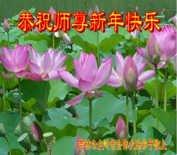 新的一年里,恭祝师尊新年快乐!感恩师尊的慈悲苦度!弟子让师尊操心了。请师尊放心,我们一定学好法,做好三件事。叩拜师尊! 吉林省通化市一大法弟子恭祝慈悲伟大的师尊新年快乐!