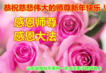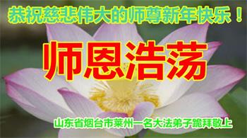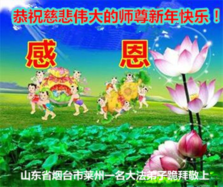 山东省烟台市莱州一名大法弟子恭祝慈悲伟大的师尊新年快乐!