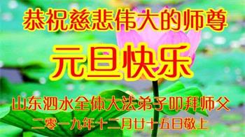 山东泗水全体大法弟子恭祝慈悲伟大的师父元旦快乐!