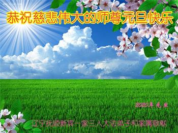 辽宁省抚顺市新宾一家三人大法弟子和家属敬献 辽宁省抚顺市一老年学法小组大法弟子恭祝慈悲伟大的师尊新年快乐!