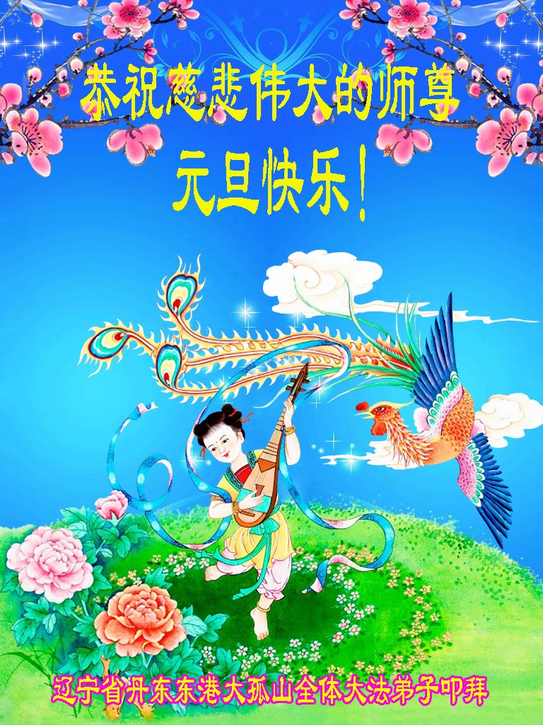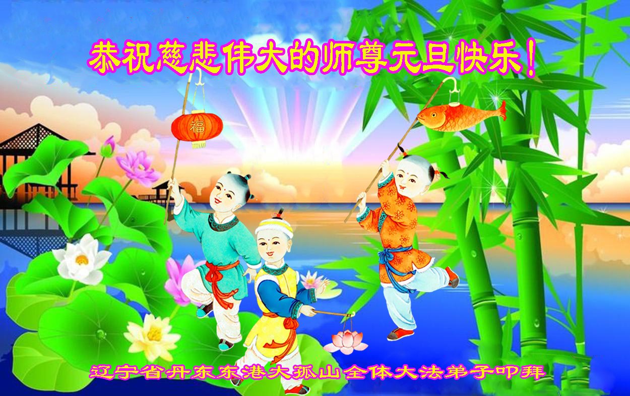 辽宁省丹东市东港大孤山全体大法弟子恭祝慈悲伟大的师尊元旦快乐!