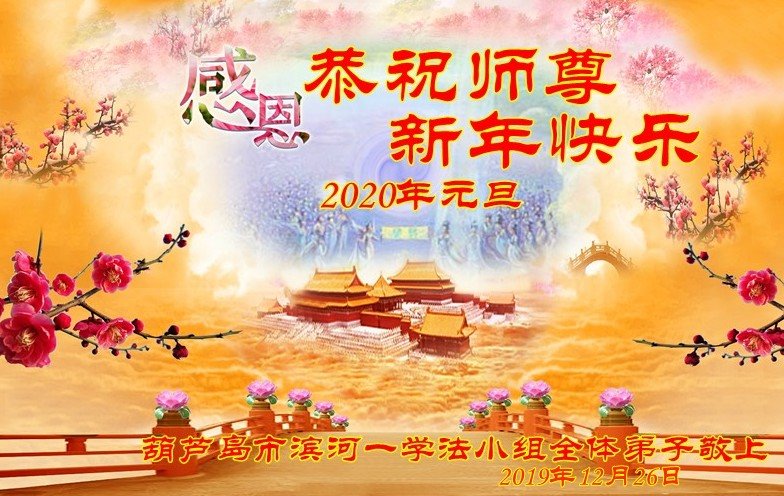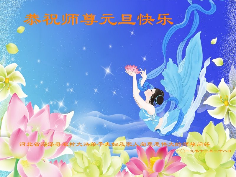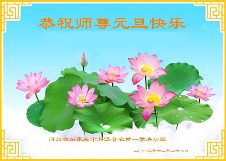 在新年到来之际,我们滨河学法小组全体大法弟子恭祝师尊新年快乐! 在师父的慈悲保护下,我们又度过了不平凡的一年。回首过去的一年,我们小组同修遇事向内找,一心为别人着想,看到不足互相善意的指出;在救度众生中我们去掉了很多怕心。以前我们在市内讲真相救人,现在去农村集市讲真相救的人更多;同时去的执着心也多,提高的也快。 我们在新的一年里一定按照师父说的去做,做好三件事,坚定不移地跟师父回家,让师父放心。 辽宁省葫芦岛市滨河一学法小组全体弟子敬上 2019年12月26日 河北省保定市易县农村大法弟子恭祝师尊新年好!