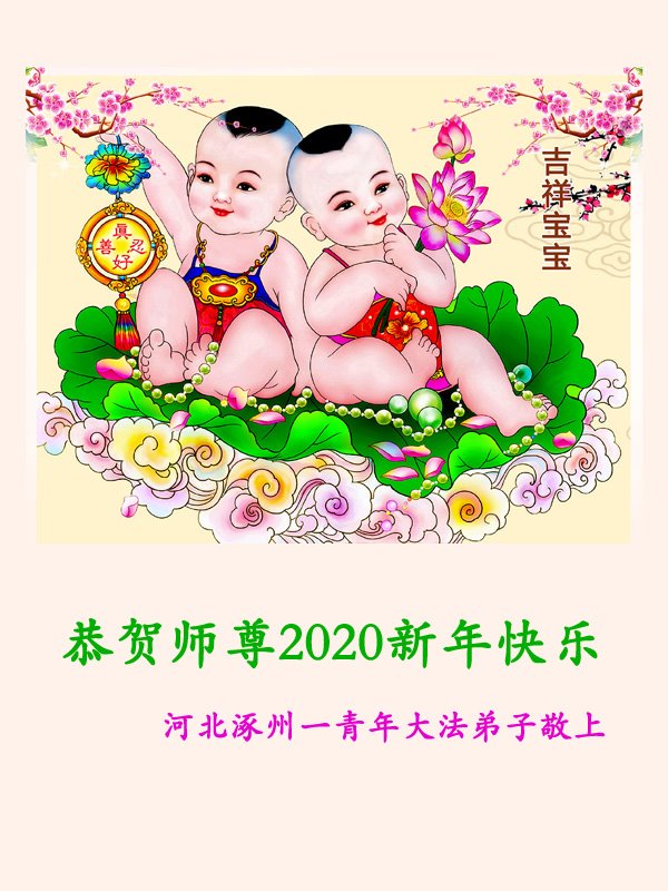 恭祝师尊新年快乐! 慈悲伟大的师尊您好!祝您新年快乐!弟子在修炼路上走过了22年,无时无刻不在师尊的慈悲保护下,师尊为我们操碎了心,弟子感恩师尊! 弟子们一定谨遵师尊教诲,努力做好三件事,多救人,跟师父回家!弟子们惟愿师尊笑!祝师尊新年快乐!想您! 河北保定二人学法小组敬上 2019年12月27日 河北省保定市涿州市一青年大法弟子恭祝师尊2020新年快乐!