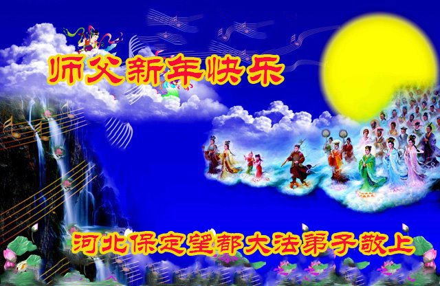 恭祝慈悲伟大的师尊新年好!新年快乐! 叩谢师尊! 河北省保定涞源县大法弟子敬上 河北省保定市定兴县全体大法弟子恭祝慈悲伟大的师尊新年快乐!