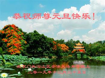师父辛苦了!感恩师尊的慈悲苦度!弟子在新的一年里一定勇猛精進,多救人,以报师尊的救度之恩。 北京市门头沟全体大法弟子恭祝师尊元旦快乐!