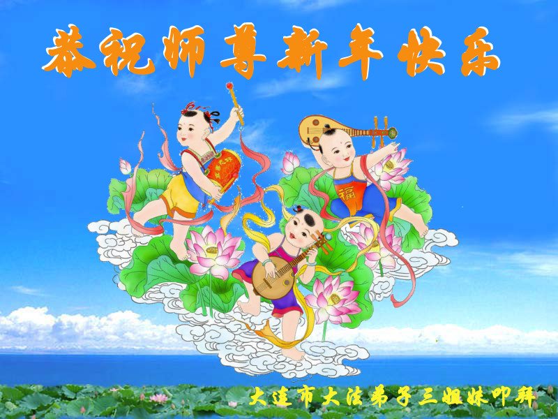 伟大的慈祥的师尊为救度所有的弟子、众生历经万般辛苦!我能做一名法轮大法的弟子,感觉到无比幸福和自豪!所以今后要多学法,做好三件事,助师正法!讲真相、多救世人。跟师尊回家! 辽宁省大连市甘井子区一学法小组及家人恭祝师尊新年快乐!