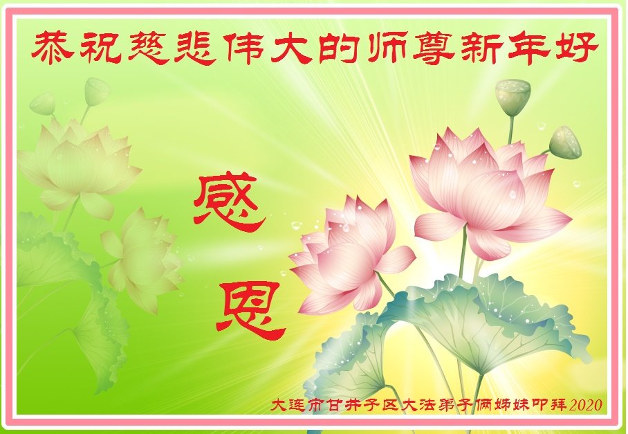 感恩师尊让我们有机会做的更好,跟上正法進程。 辽宁省大连市甘井子区两姊妹大法弟子恭祝慈悲伟大的师尊新年好!