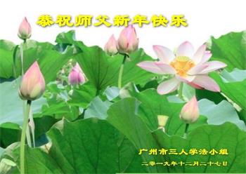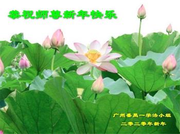 广东省广州大法弟子三人学法小组大法弟子恭祝师父新年快乐!