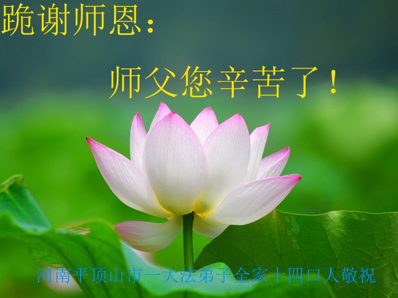 师尊您辛苦啦,恭祝师尊新年快乐! 河南夫妻大法弟子 河南平顶山一家三代大法弟子恭祝师尊新年好!
