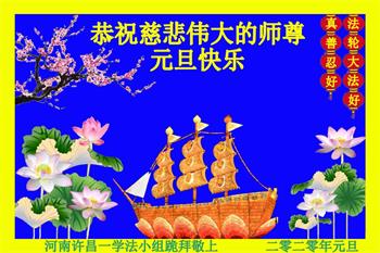 祝师尊新年快乐!在新的一年我们大法弟子要勇猛精進,让师父少一份对弟子的操劳。谢谢我们伟大的师尊! 河南省许昌市一家大法弟子恭祝慈悲伟大的师尊新年快乐!