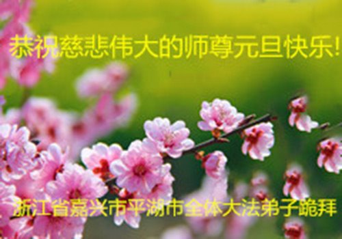 浙江省嘉兴市平湖市大法弟子全家及山里红学法小组学员遥祝师尊新年快乐!