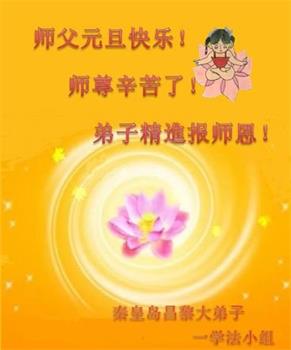 恭祝师尊新年快乐! 弟子走好师尊给安排的路,抓紧救人,多救人,修好自己,完成使命。 秦皇岛市一学法小组大法弟子敬上 2019年12月26日 河北省秦皇岛市大法弟子恭祝师尊新年快乐!