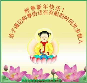 我们在师尊的慈悲保护下走过了过去的一年。在新的一年里,我们要更加精進,多学法、学好法,做好三件事,多救人,走好最后的每一步,不负师尊所望,让师尊多一份欣慰,少一份操劳。跟上正法進程,随师尊回家!再一次祝师尊新年好! |