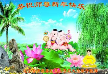 一年一度的新年快到了,弟子恭祝师尊新年快乐! 在正法修炼的最后时刻,只有精進实修,多救人,跟上正法進程,让师尊少一份操劳,多一份欣慰。完成大法弟子的历史使命。做好三件事,多学法,向内找,去执着,圆满跟师父回家! 鞍山市铁东区一学法小组全体大法弟子敬上 辽宁省丹东市凤城市大法弟子恭祝师尊新年快乐!