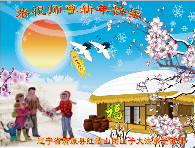 辽宁鲅鱼圈一学法小组大法弟子恭祝师父新年快乐!