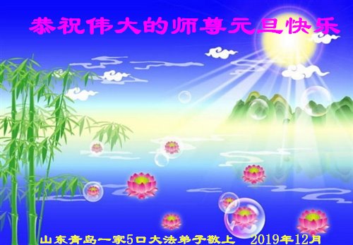 山东青岛一家5口大法弟子恭祝伟大的师尊元旦快乐!