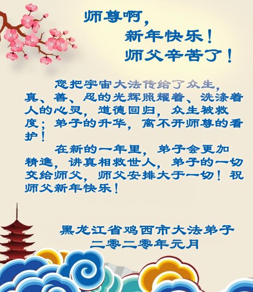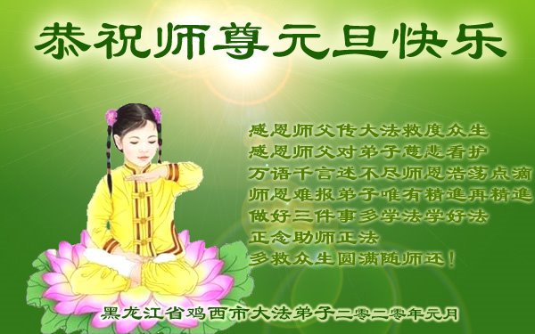 恭祝师尊新年快乐! 黑龙江省鸡西市大法弟子恭祝慈悲伟大的师尊新年快乐!
