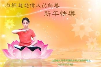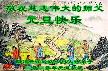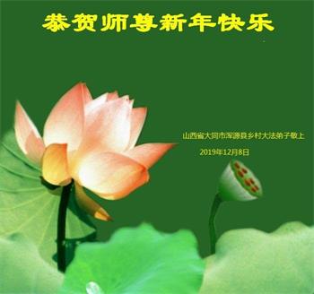 时间如流水,不知不觉新的一年又来到了。在这里我首先祝慈悲伟大的师父新年快乐!师父您好,师父辛苦了! 在修炼还没有结束的时间里,我们要努力做好师父要求的三件事:学好法,修好自己,救度众生,在大法中修出真正的善心来,去掉旧观念,多救有缘人,让师父多一份开心,少一份操劳。 谢谢师父! 山西省大同市浑源县一乡村学法小组敬上 2019年12月15日 四川开江边远乡村大法弟子敬祝慈悲伟大的师父元旦快乐!