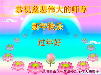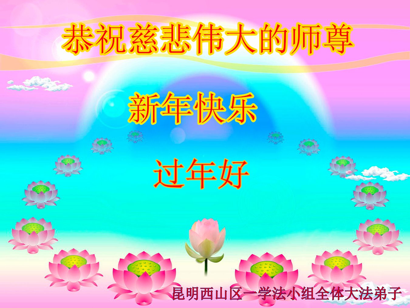 云南省昆明市西山区一学法小组全体大法弟子恭祝师尊新年快乐!