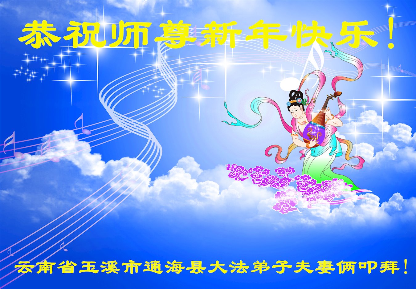 云南省玉溪市通海县大法弟子夫妻二人恭祝师尊新年快乐!