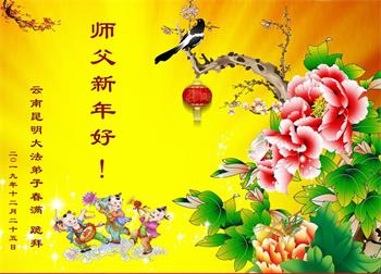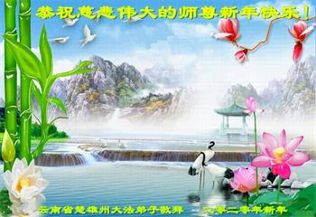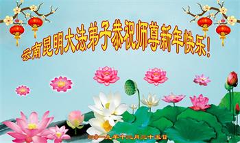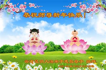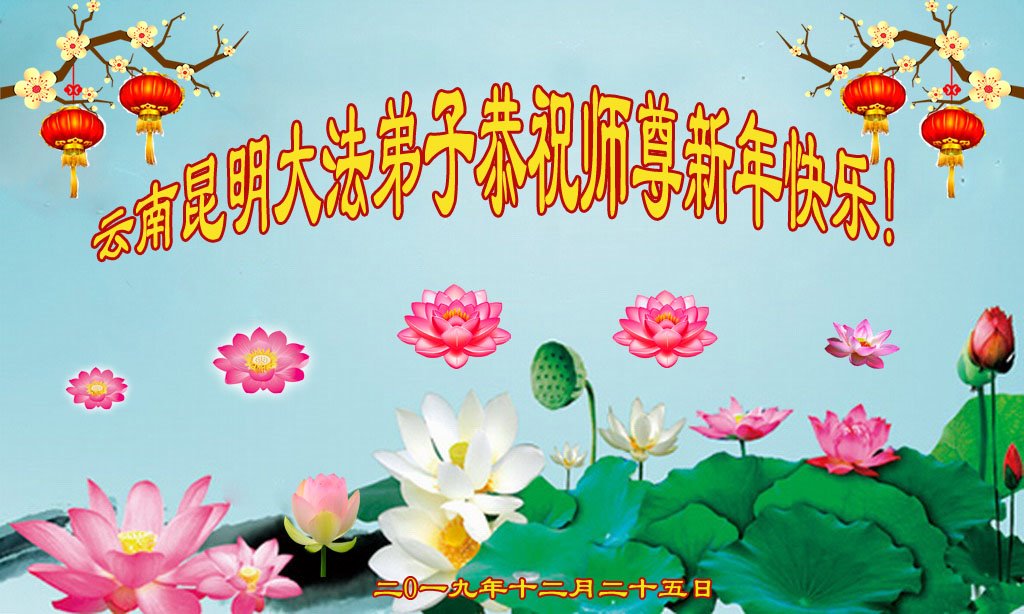 云南昆明全体大法弟子恭祝慈悲伟大的师尊新年快乐!