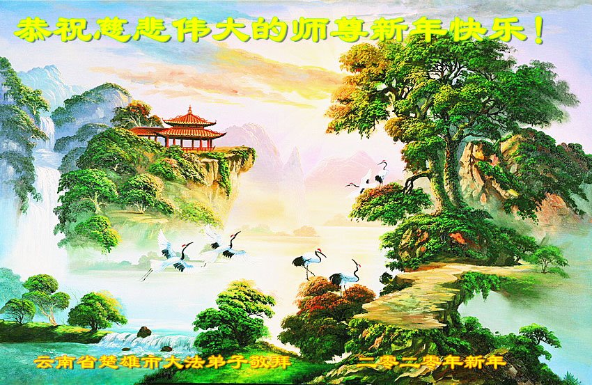 感谢师尊慈悲救度,坚修大法心不动,继续做好三件事,紧跟师尊走好最后的路。 云南全体大法弟子恭祝慈悲伟大的师尊新年快乐!