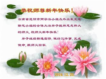 【明慧网二零一九年十二月三十一日】 云南省楚雄州楚雄市大法弟子恭祝慈悲伟大的师尊新年快乐!师尊辛苦了!
