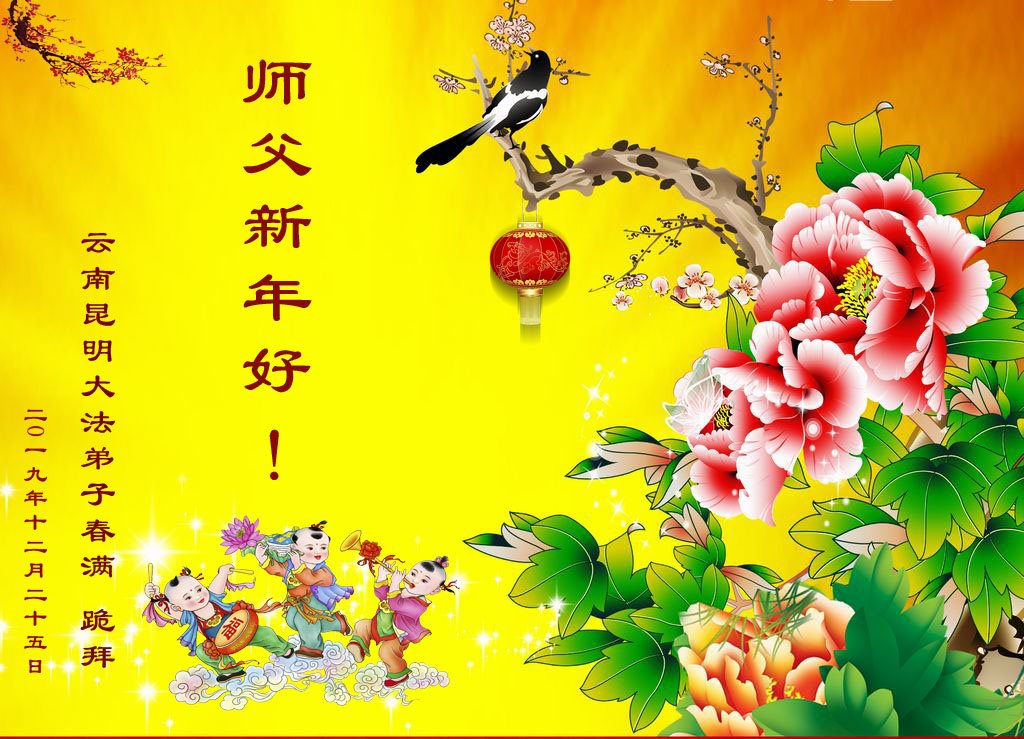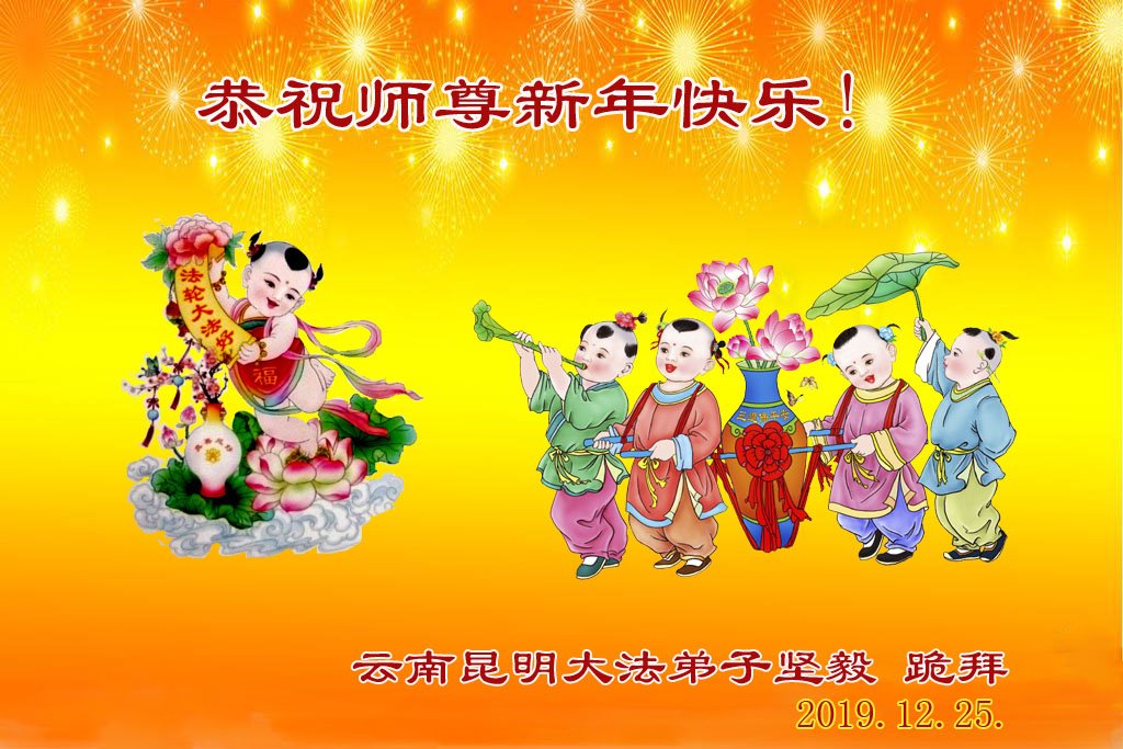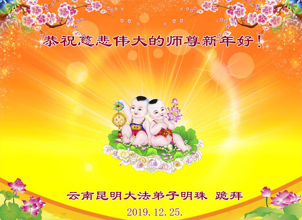 又是新的一年,恭祝师尊新年好! 在过去一年弟子愧对师父,但师父一直在给弟子机会,谢谢师父!也希望自己修的越来越好。 云南省昆明市禄劝县大法弟子恭祝慈悲伟大的师父2020年新年快乐!