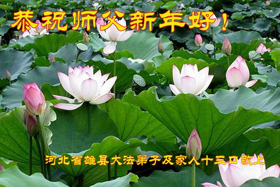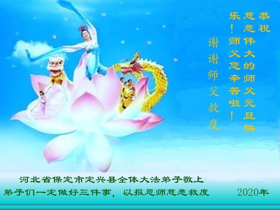 在新年到来之际,弟子叩拜恩师!恭祝师尊新年快乐!弟子虽然走入修炼这么多年,却没有践行大法弟子的神圣使命,愧对师尊的慈悲苦度和众生的期盼。在过去的一年里,伟大的师尊把我从痴迷中叫醒,弟子才又回到归途,错失的一切无法弥补,悔过之余,弟子唯有再精進,在大法中归正,助师正法,才能回报师恩。 河北省雄县大法弟子敬上 2019年12月28日 河北省保定市定兴县全体大法弟子祝愿师父元旦快乐!