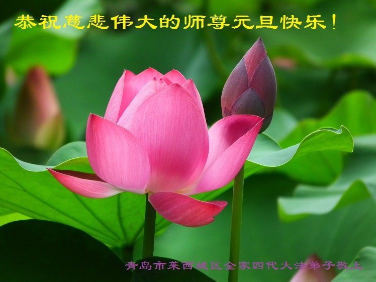 青岛市莱北京市西城区全家四代大法弟子恭祝慈悲伟大的师尊元旦快乐!