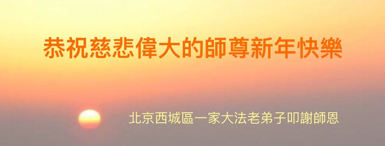 师尊好,师尊您辛苦了!感恩师尊慈悲救度,请师尊放心,我会在修炼路上勇猛精進,认真学法,学好法,做好三件事,实修到底。 北京流离失所大法弟子恭祝慈悲伟大的师尊新年快乐!