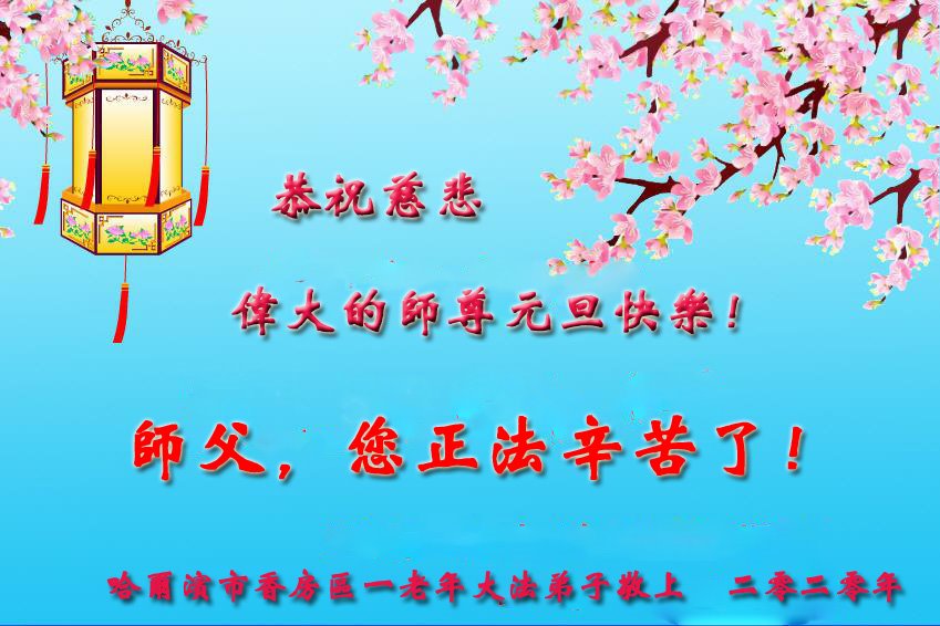 【明慧网二零一九年十二月三十一日】 黑龙江省哈尔滨市香坊区大法弟子恭祝慈悲伟大的师尊元旦快乐!