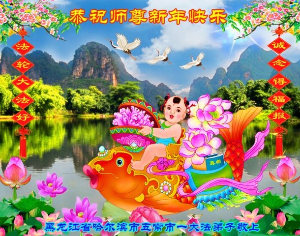 黑龙江省哈尔滨市五常市一大法弟子恭祝师尊新年快乐!