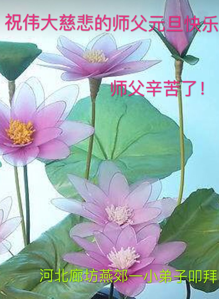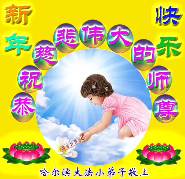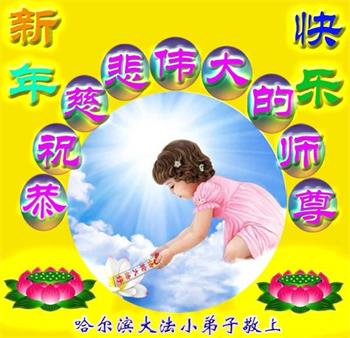 黑龙江哈尔滨大法小弟子恭祝慈悲伟大的师尊新年快乐! 河北廊坊燕郊一大法小弟子祝伟大慈悲的师父元旦快乐!