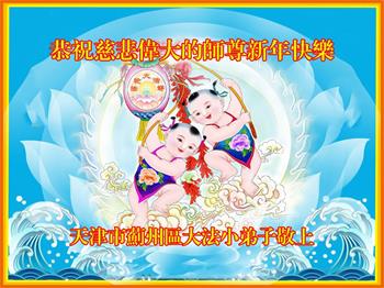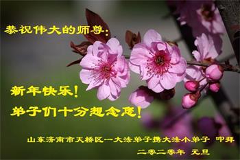感恩师尊慈悲苦度,弟子期盼师尊早日回国与弟子们团聚! 山东济南市天桥区一大法弟子携大法小弟子恭祝师尊新年快乐!