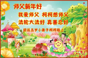 我叫柯柯,今年五周岁了。师父您好,柯柯想您了,我想给您个大苹果。祝师父新年快乐!我爱师父,我喜欢法轮大法,喜欢真善忍,喜欢学法,喜欢背《洪吟》。感谢师父告诉我们做人的道理,我要做一个真善忍的好宝宝,不和妹妹还有小朋友打架,谢谢师父度我们,想师父! 天津市蓟州区大法小弟子恭祝慈悲伟大的师尊新年快乐!