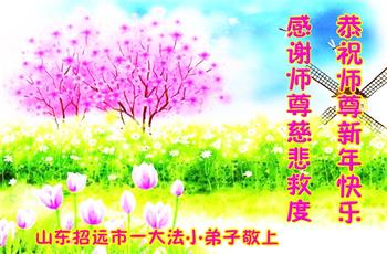 弟子们十分想念师父您!深知大法已溶入弟子的身体的每个粒子中,此生为法而来,唯有破除干扰,精進不停,才能不负此生。在此也代表全家人恭祝师尊新年快乐! 山东烟台招远市一大法小弟子恭祝师尊新年快乐!