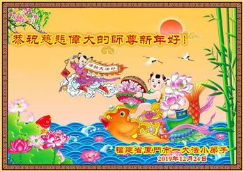 二零二零年,广东省佛山市一大法弟子携大法小弟子恭祝慈悲伟大的师尊元旦快乐! 上海市大法小弟子和父母等大法弟子恭祝师尊新年快乐!