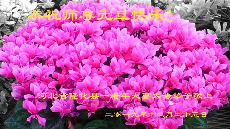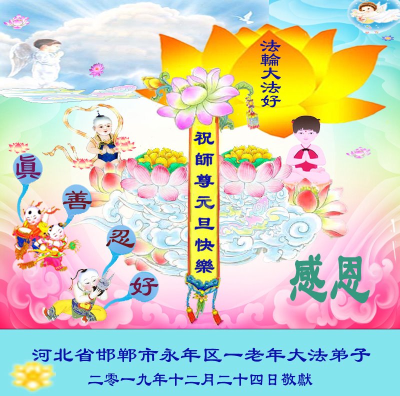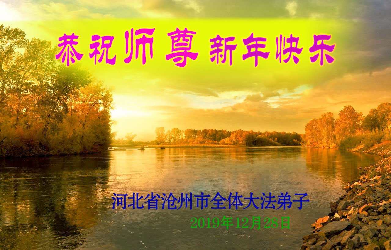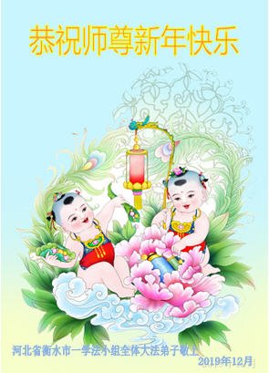 是师父归正了我的人生道路,使我走在了“返本归真”的路上;是师父启悟了我的本性,为何来在世上;道路坎坷,跌倒了我站起来还往前走,有师父有大法我就能一直往前走;兑现誓约,跟师父回家,不达目地决不停留。 在这新年之际,恭祝师父新年好! 河北省衡水地区一老年大法弟子 2019年12月21日 河北省衡水市一学法小组大法弟子恭祝师尊新年快乐!