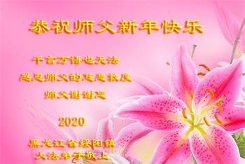 在新的一年到来之际,想借明慧一角,表达自己的心声。衷心祝师父新年快乐!师父慈悲救度弟子,弟子讲真相救世人。弟子在做三件事中,提高心性,去执着,用大法标准衡量自己,听师父的话。弟子要去除负的一面,修出善的一面,做到时时刻刻用大法来归正自己,一正压百邪。不辜负师父的慈悲救度,让伟大的师父少操心,惟愿师尊笑! 黑龙江省尚氏家族大法弟子恭祝师尊新年好!