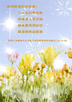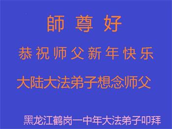 大陆大法弟子十分想念师父,盼望师尊早日回中国大陆。 黑龙江省鹤岗市大法弟子恭祝师尊新年快乐!